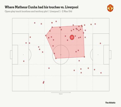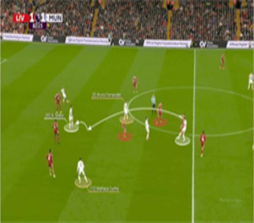 這戰(zhàn)術(shù)變化產(chǎn)生了很大的效果,庫(kù)尼亞經(jīng)常大范圍回撤,幫助布魯諾·費(fèi)爾南德斯和卡塞米羅控制中場(chǎng),并迫使利物浦防守隊(duì)員離開(kāi)自己的位置,這幫助姆貝莫在邊路覓得空間。