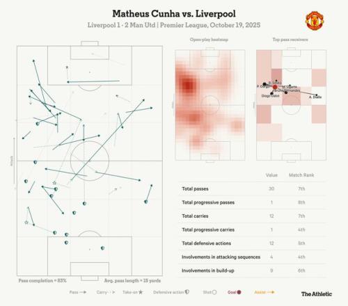 這場(chǎng)比賽中,庫(kù)尼亞與拉門(mén)斯和B費(fèi)并列成為曼聯(lián)球員中觸球次數(shù)最多的球員。