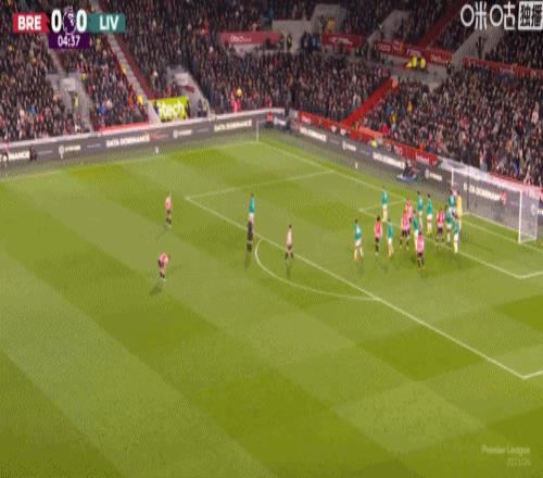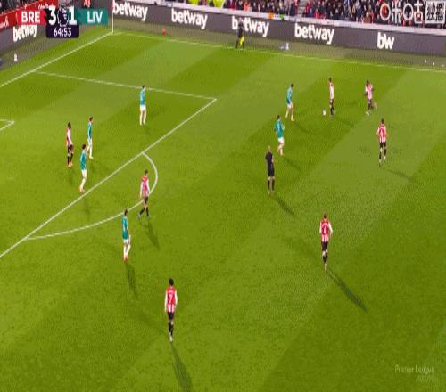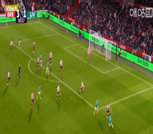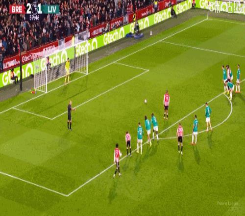 第5分鐘,手榴彈戰術,瓦塔拉半凌空倒鉤破門,布倫特福德1-0利物浦