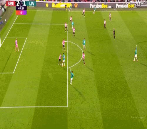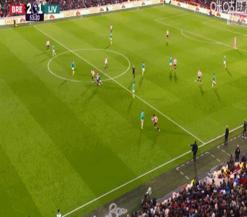 第88分鐘,薩拉赫左腳停球右腳抽射破門,利物浦2-3布倫特福德